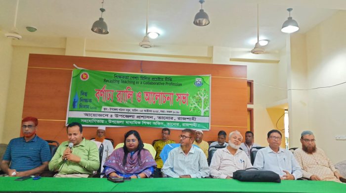 ঝিনাইদহের শৈলকূপা উপজেলায় বিশ্ব শিক্ষক দিবস ২০২৫ উদযাপন উপলক্ষ্যে আলোচনা সভা অনুষ্ঠিত হয়েছে। এবারের শিক্ষক দিবসের স্লোগান ‘শিক্ষক পেশা: মিলিত প্রচেষ্টার দীপ্তি’।রোববার (৫ অক্টোবর) সকালে শৈলকূপা উপজেলা ও শিক্ষা পরিবারের আয়োজনে উপজেলা কার্যালয় সম্মেলন কক্ষে বিশ্ব শিক্ষক দিবস ২০২৫ উপলক্ষ্যে আলোচনা সভা অনুষ্ঠিত হয়।অনুষ্ঠানে প্রধান অতিথি ছিলেন উপজেলা নির্বাহী অফিসার স্নিগ্ধা দাস। সভাপতিত্ব করেন শৈলকুপা সরকারী ডিগ্রী কলেজের অধ্যক্ষ প্রফেসর ড. বিধান চন্দ্র বিশ্বাস,এছাড়া ও উপস্থিত ছিলেন শৈলকুপা সরকারী পাইলট উচ্চ বিদ্যালয়ের প্রধান শিক্ষক, উপজেলা মাধ্যমিক শিক্ষা অফিসার, সহকারী মাধ্যমিক শিক্ষা অফিসার, একাডেমিক সুপার ভাইজার, মাধ্যমিক শিক্ষক সমিতি উপজেলা শাখার সভাপতি,সম্পাদক সহ বিভিন্ন সরকারী বেসরকারী প্রতিষ্ঠানের শিক্ষকরা।শুরুতে বর্ণাঢ্য এক র্যালি বের হয়ে শৈলকূপা শহরের গুরুত্বপূর্ণ সড়ক প্রদক্ষিণ করে উপজেলা কার্যালয় গিয়ে শেষ হয়। পরে সেখানে আলোচনা সভা অনুষ্ঠিত হয়। আলোচনা সভায় অতিথিরা বলেন মানুষ গড়ার কারিগর শিক্ষকদের সম্মান জানাতে বিশ্ব শিক্ষক দিবসের বিভিন্ন বিষয় তুলে ধরে আলোচনা করেন।