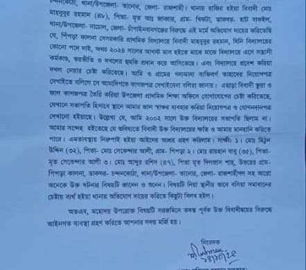 অভিযোগে উল্লেখ ভুয়া শিক্ষক মাহাবুর রহমান পিঁপড়া কালনা বেসরকারি প্রাথমিক বিদ্যালয়ের কোনো পদে নাই। অথচ ২০২৪ সালের জুলাই বিপ্লবের পর নিজেকে প্রধান শিক্ষক দাবি করে অস্বাভাবিক অবস্থায়