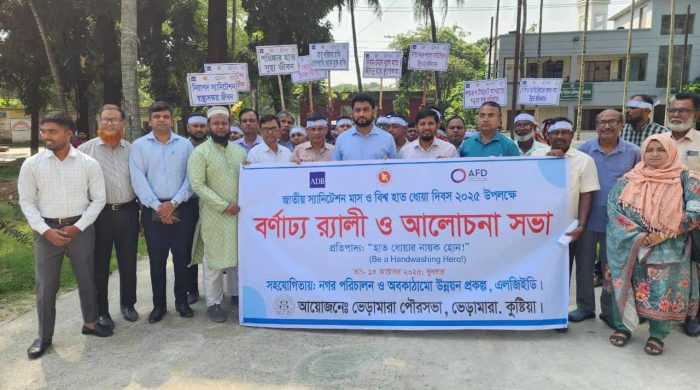কুষ্টিয়ার ভেড়ামারায় জাতীয় স্যানিটশন মাস ও বিশ্ব হাত ধোয়া দিবস-২০২৫ উদযাপন উপলক্ষে বর্ণাঢ্য র্যালি, হাত ধোয়া প্রদর্শনী ও আলোচনা সভা অনুষ্ঠিত হয়।