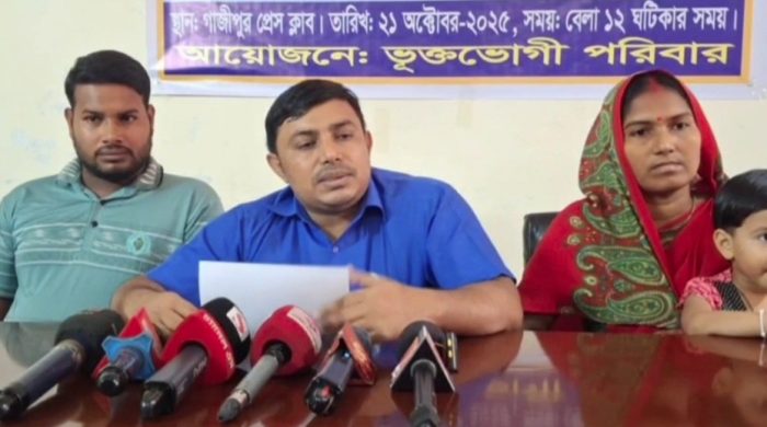 গাজীপুরের কালীগঞ্জের বিরুয়া নলছাটা এলাকায় নিজেদের নিরাপত্তা ও জমি রক্ষার দাবিতে একটি সংবাদ সম্মেলনের আয়োজন করা হয়। মঙ্গলবার (২১ অক্টোবর) দুপুরে গাজীপুর প্রেসক্লাবে আয়োজিত এ সংবাদ সম্মেলনে লিখিত বক্তব্য রাখেন ভুক্তভোগী হৃদয় চন্দ্র দাস।